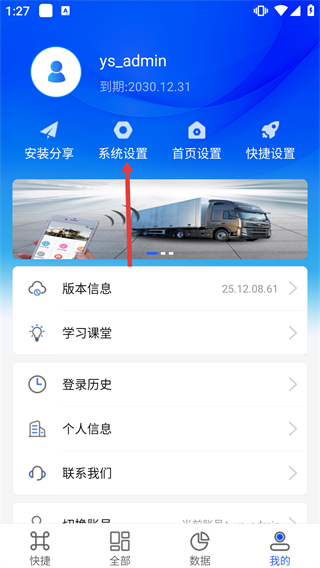1、在“我的”頁面,點擊頂部功能欄中的【系統(tǒng)設置】選項,可進入該軟件的系統(tǒng)相關配置界面。