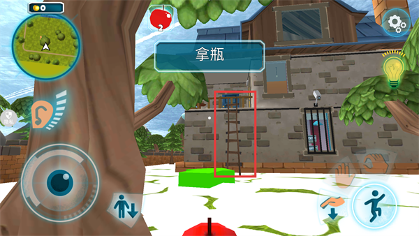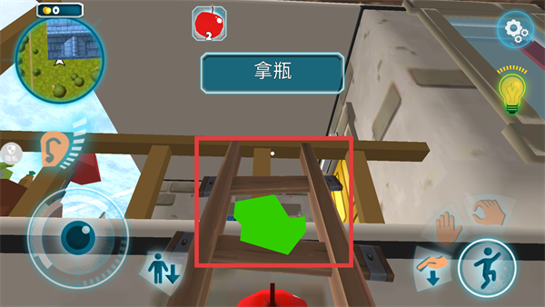 2、接取【拿瓶】任務(wù)后,跟隨指引移動(dòng)角色,找到梯子旁的目標(biāo)物品區(qū)域,準(zhǔn)備執(zhí)行交互操作。