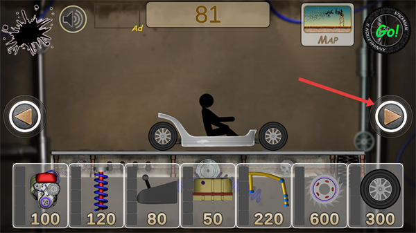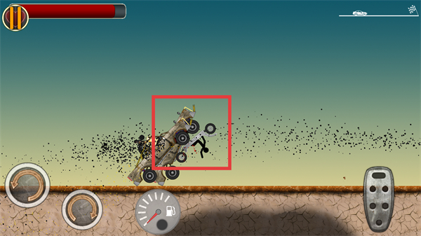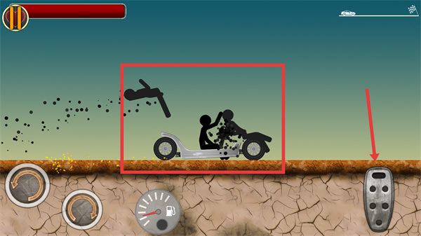 2、按住右側(cè)【油門】按鈕加速戰(zhàn)車,利用撞擊直接擊倒敵方【火柴人】,快速積累消滅數(shù)推進(jìn)關(guān)卡。