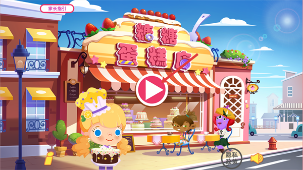 1、在【糖糖蛋糕店】游戲界面,點(diǎn)擊中間的播放按鈕。