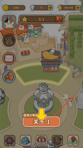 1、進入游戲主界面,點擊下方【關(guān)卡1】按鈕。