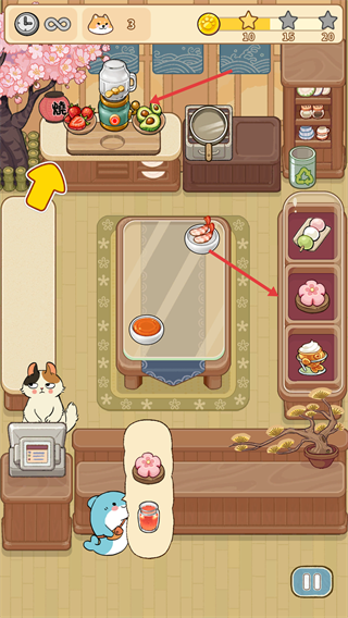 2、進入關(guān)卡,根據(jù)顧客要求,準備菜品。