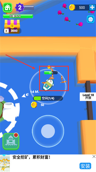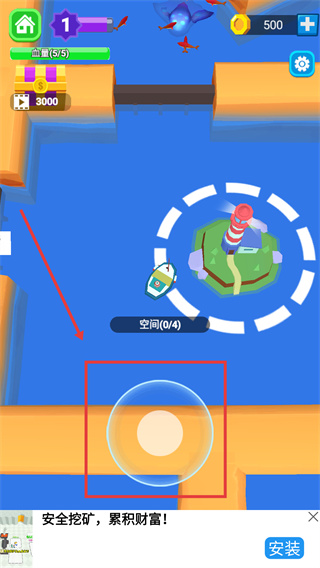 1、初始階段點擊操作區(qū)域控制船只,逐步收集資源積累財富。