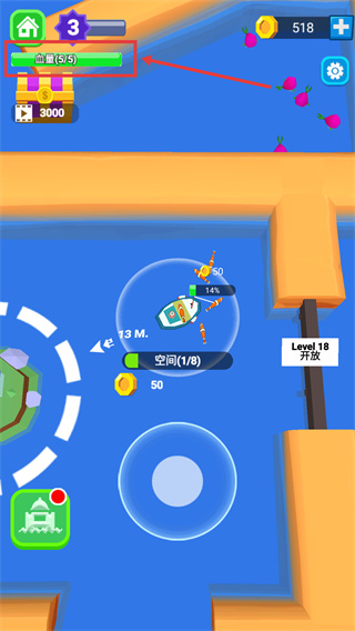3、保持【血量(5/5)】滿值以保障探索安全,隨著等級提升,【空間】容量會擴(kuò)展至(1/8)。