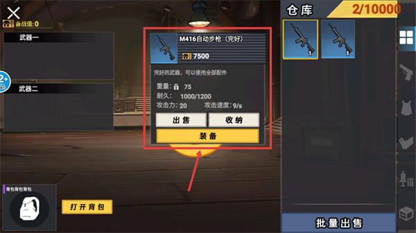 1、在裝備界面選擇【M416自動(dòng)步槍】裝備,提升攻擊力與續(xù)航,為后續(xù)校園探索和戰(zhàn)斗做準(zhǔn)備。