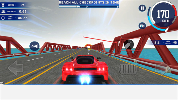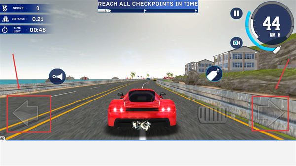 1、操控時(shí)利用左右方向按鈕調(diào)整車輛行進(jìn)路線,同時(shí)關(guān)注【TIME-LEFT】計(jì)時(shí),需在時(shí)限內(nèi)抵達(dá)檢查點(diǎn)。