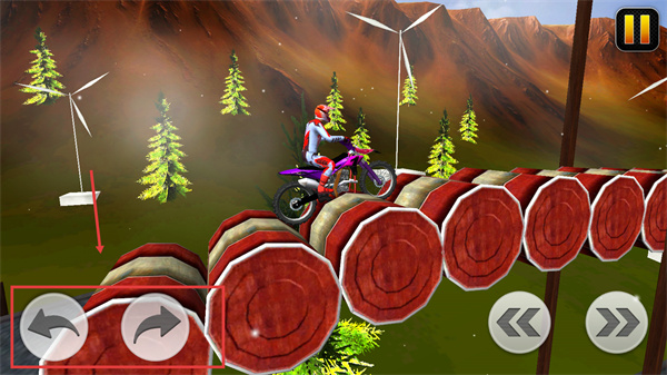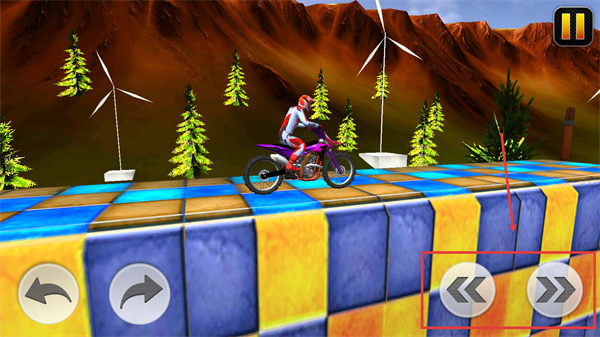 1、操控時利用右側(cè)的方向按鈕調(diào)整摩托車的行進軌跡,保持車身平衡。