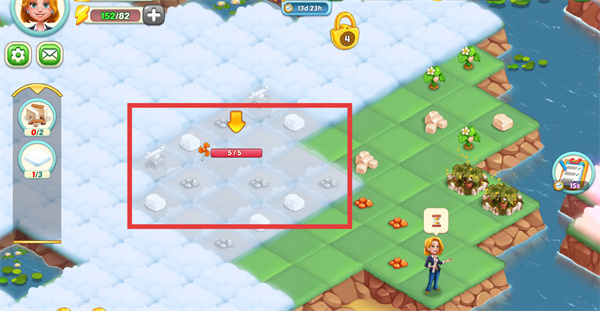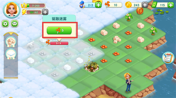3、消耗道具點(diǎn)擊【驅(qū)散迷霧】按鈕,解鎖被迷霧覆蓋的區(qū)域,獲取更多建設(shè)空間。