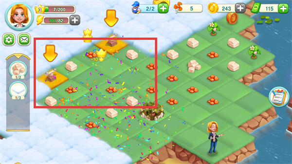 4、消除任務(wù)完成后獲得【寶箱】與裝飾道具,將這些資源用于小鎮(zhèn)的設(shè)施升級(jí)與美化。