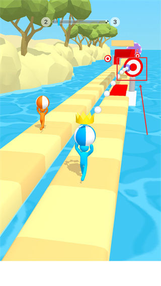 1、操控角色沿賽道前進,拾取沿途的白球道具,到達終點時將球投向【靶心】,可提升關(guān)卡評分與獎勵。