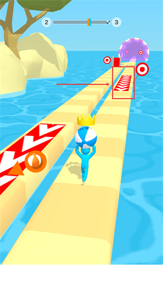 2、遇到賽道上的【加速帶】時,控制角色踩踏通過,可短時間提升移動速度,更快追趕對手或抵達終點。