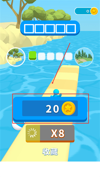 3、關(guān)卡結(jié)束后,可領(lǐng)取【20-金幣】獎勵,也可通過對應(yīng)操作獲得【X8】倍數(shù)的收益加成,積累更多資源。